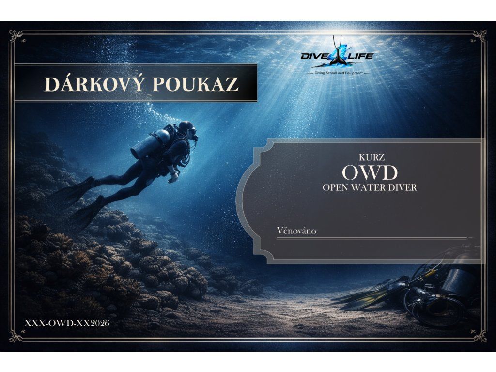 - v ceně je zahrnuto : e-learning , dekompresní tabulky , učebnice, základní vystroj (kompenzátor, automatika, lahev), plnění láhví, zkouška